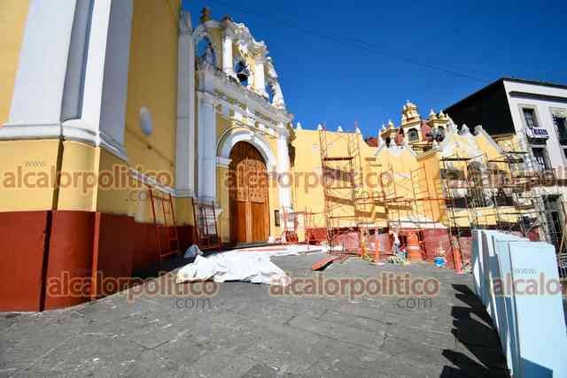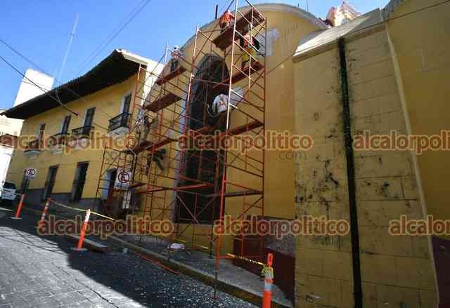 Xalapa, Ver., 7 de enero de 2026.- Comenzaron los trabajos de restauración de la Catedral Metropolitana, la cual será pintada de color blanco ostión, al igual que Palacio de Gobierno, el Hotel México, Pasaje Tanos y el Edificio Xalapa, como parte del proyecto de rehabilitación del Centro Histórico.