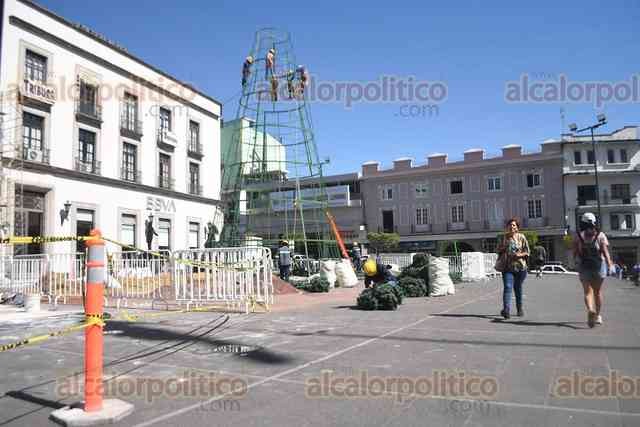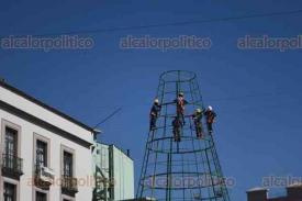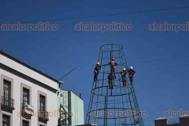 Xalapa, Ver., 9 de enero de 2026.- Comienzan a quitar el árbol de Navidad de Plaza Lerdo.