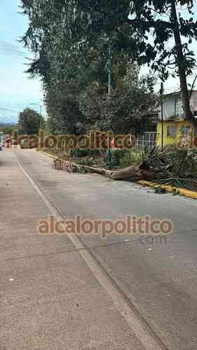 Xalapa, Ver., 10 de enero de 2026.- La tarde de este sábado se comienzan a sentir los estragos del Frente Frío 27, por el fuerte viento cayeron dos árboles en la calle Félix Z. Licona, colonia Rafael Lucio.