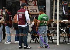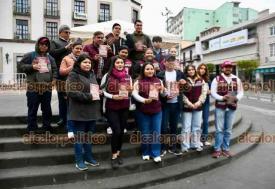 Xalapa, Ver., 11 de enero de 2026.- Con un módulo colocado en Plaza Lerdo, militantes de MORENA realizaron Jornadas en Defensa de la Soberanía Nacional.