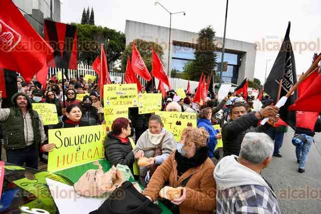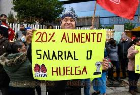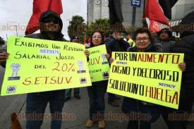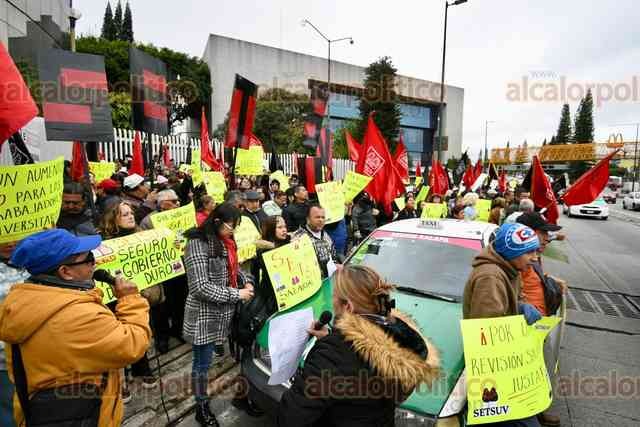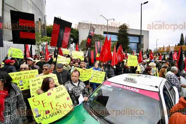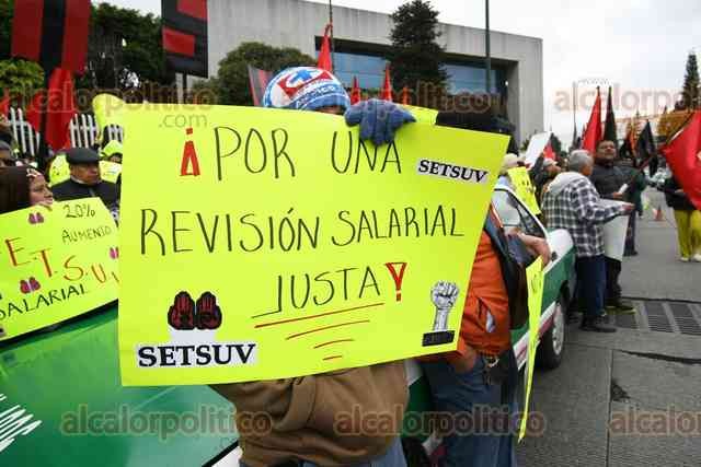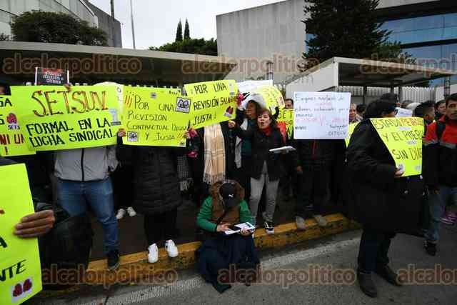 Xalapa, Ver., 27 de enero de 2026.- Frente a la sede del Poder Judicial de Veracruz, donde acudieron a una reunión, integrantes del SETSUV se manifestaron en demanda del 20% de aumento salarial.