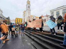 Xalapa, Ver., 31 de enero de 2026.- Un grupo de personas marchó en la avenida Ávila Camacho, del Teatro del Estado hacia el centro de la Capital, en protesta por el alza al pasaje del transporte público. Demandan tarifas justas.