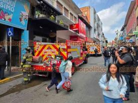 Xalapa, Ver., 4 de febrero de 2026.- Conato de incendio en local comercial de la calle Carrillo Puerto, en la zona Centro. Al lugar acudió personal de bomberos.