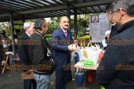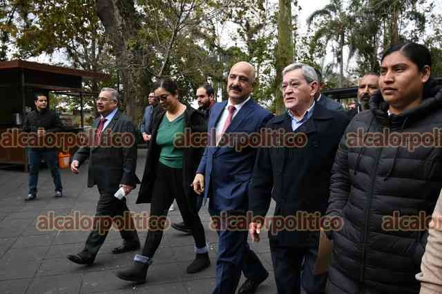 Xalapa, Ver., 5 de febrero de 2026.- El secretario de Gobierno, Ricardo Ahued, hizo una parada para comerse unos tacos en el Parque Juárez, donde comentó a sus colaboradores que no por vestir de traje no podían comer ahí.