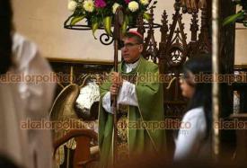 Xalapa, Ver., 8 de febrero de 2026.- El obispo chileno Andrés Ferrada Moreirea y su hermano Fernando, de visita en la Arquidiócesis de Xalapa, oficiaron la misa dominical en Catedral.