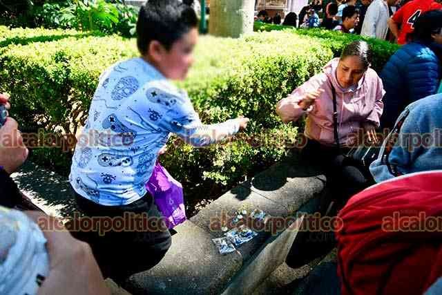 Xalapa, Ver., 8 de febrero de 2026.- Fanáticos del Chavo del 8 se reunieron en el Parque Juárez para intercambiar figuras, pero ante la afluencia de personas, acusaron que inspectores del Ayuntamiento de Xalapa los intimidaron y amenazaron.