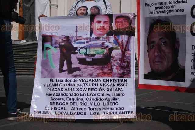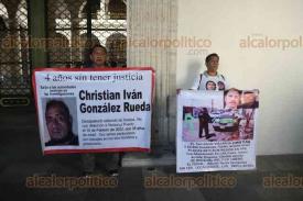 Xalapa, Ver., 10 de febrero de 2026.- Familiares de Christian Iván González, desaparecido hace 4 años, se manifestaron en Plaza Lerdo para exigir avances en la investigación.