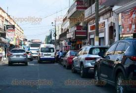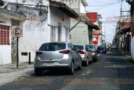 Xalapa, Ver., 13 de febrero de 2026.- A pesar de los letreros de “no estacionarse” sobre la calle Altamirano, automovilistas los ignoran, complicando el tráfico vehicular en toda la zona.