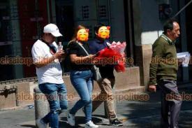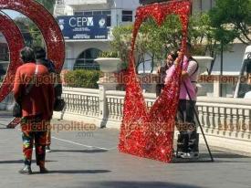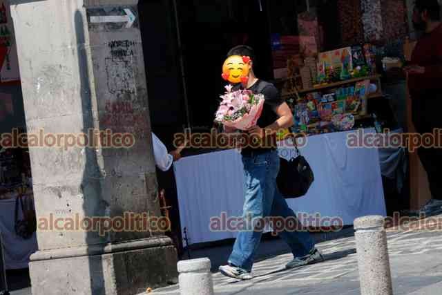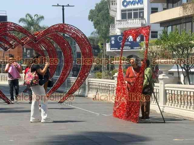 Xalapa, Ver., 14 de febrero de 2026.- Ciudadanos aprovechan adornos del parque Juárez para enmarcar recuerdos, mientras que otros ya llevan o recibieron un detalle de su ser querido.