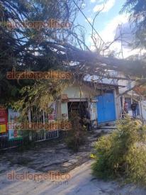 Xalapa, Ver., 22 de febrero de 2026.- Debido a los fuertes vientos, un enorme árbol cayó hacia la Avenida Fernando Gutiérrez Barrios, de la colonia Luz del Barrio, y derribó el cableado de energía eléctrica y servicio de Internet.