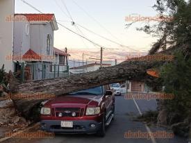 Cae árbol sobre un vehículo en la colonia Indeco Ánimas, de Xalapa
