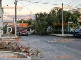 Xalapa, Ver. 22 de febrero de 2026.- Por los fuertes vientos que soplaron la mayor parte de este domingo, en la ciudad cayó un árbol de gran tamaño en la colonia Indeco Animas, no se registraron daños ni lesiones a personas