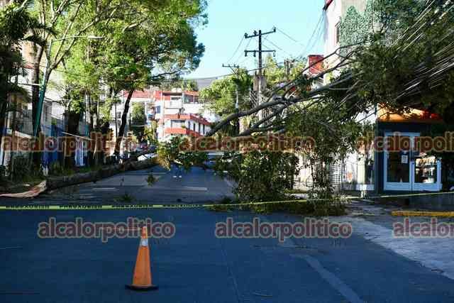 Xalapa, Ver., 22 de febrero de 2026.- Otro árbol cayó en la calle Ignacio de la Llave la tarde de este domingo, bloqueando los dos carriles.