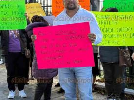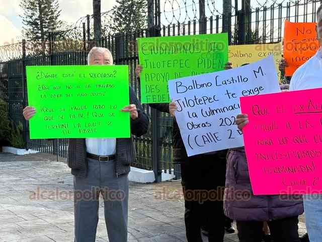 Xalapa, Ver., 24 de febrero de 2026.- Vecinos de Jilotepec protestaron en el Congreso del Estado por el abandono de la obra en la calle 2 de Abril en aquella población.