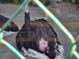 Orizaba, Ver., 24 de febrero de 2026.- Avestruz perdió el ojo en la UMA del Paseo del Río Orizaba. De acuerdo al alcalde Hugo Chahín, estaba jugando con otro y en algún momento se pelearon.