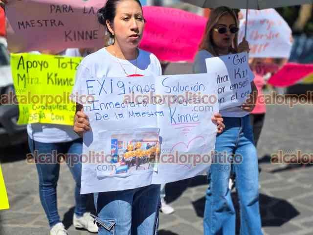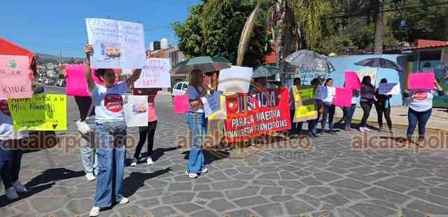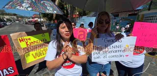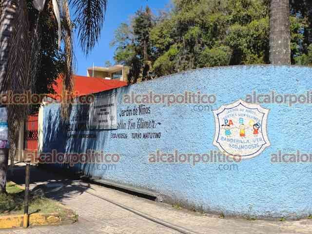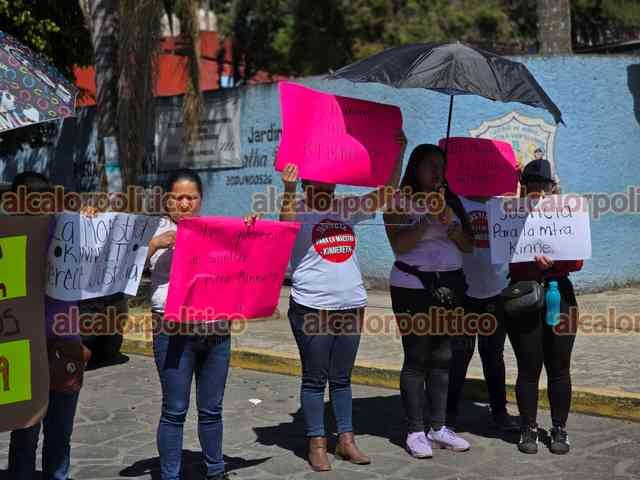 Banderilla, Ver., 27 de febrero de 2026.- Padres de familia del Jardín de Niños “Bertha Von Glümer” tomaron el plantel y bloquearon la calle principal en protesta porque les quitaron a una educadora.
