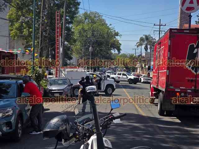 Xalapa, Ver., 27 de febrero de 2026.- Camión de una cervecera provocó el cierre de la avenida Miguel Alemán cerca del mediodía de este viernes al jalar cables de luz.