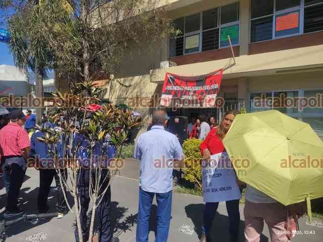 Xalapa, Ver., 27 de febrero de 2026.- Integrantes del SETSUV llevaron frente al Poder Judicial su protesta para exigir aumento salarial.