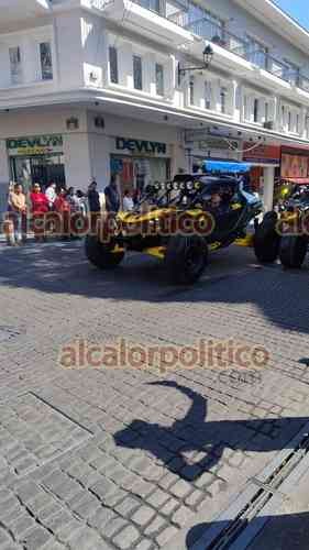 Xalapa, Ver., 28 de febrero de 2026.- Para conmemorar los días del Ejército y Fuerza Aérea mexicanos, este sábado se llevó a cabo una rodada de motos y vehículos llamados racers, que pasó por la calle Enríquez, en el centro de la Capital.