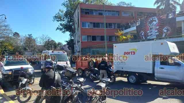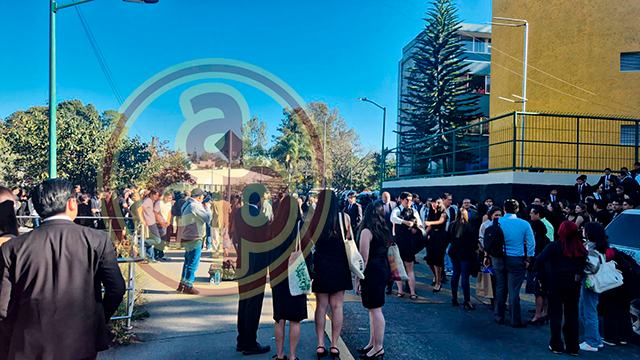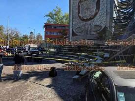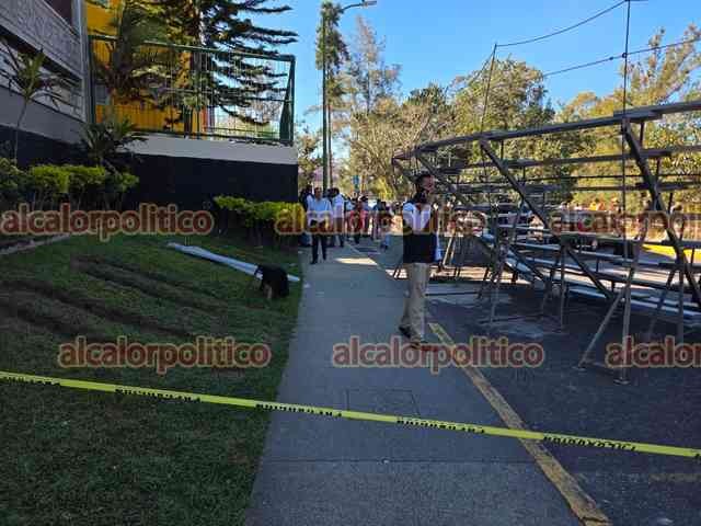 Xalapa, Ver., 2 de marzo de 2026.- Durante la toma de foto de generación de alumnos del sistema escolarizado de la Facultad de Derecho UV la estructura colocada para ellos se desplomó. Se reportan lesionados.