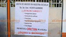 Río Blanco, Ver., 3 de marzo de 2026.- Docentes de la Escuela Secundaria “Vicente Guerrero” tomaron el plantel para exigir un alto al hostigamiento que sufren por parte de la directora quien, según dijeron, debió haberse ido del plantel en noviembre.