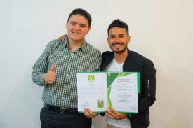 Xalapa, Ver., 6 de marzo de 2026.- Este jueves, el dirigente estatal del Partido Verde, Édgar Lendechy Herrera (d), le tomó protesta a Reynaldo Escobar Estudillo como coordinador de activismo político del PVEM en esta ciudad capital.