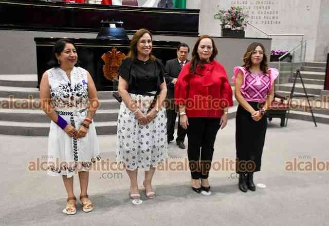 Xalapa, Ver., 6 de marzo de 2026.- En sesión solemne en el Congreso del Estado, la gobernadora Norma Rocío Nahle García entregó el Premio Estatal a la Mujer 2026 a la maestra Ana María Autrán Gómez.