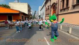 Xalapa, Ver., 7 de marzo de 2026.- Este año, el Jardín de Niños “Esperanza Osorio” conmemora su 80 aniversario. Para celebrarlo, estudiantes, padres de familia y educadoras desfilaron por el centro de la Capital y fueron acompañados por la Marching Band Cardenales Técnica 105.
