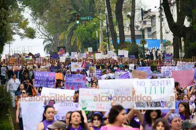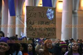 Xalapa, Ver., 8 de marzo de 2026.- Fueron miles de xalapeñas quienes este Día de la Mujer abarrotaron calles del Centro. “¿Y tú, esperas que te maten a tu hija?”, “Aunque no estés denunciado, sabemos lo que hiciste”, “Calladita no me veo más bonita”, fueron algunos de los mensajes que se observaron en la movilización