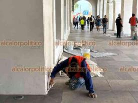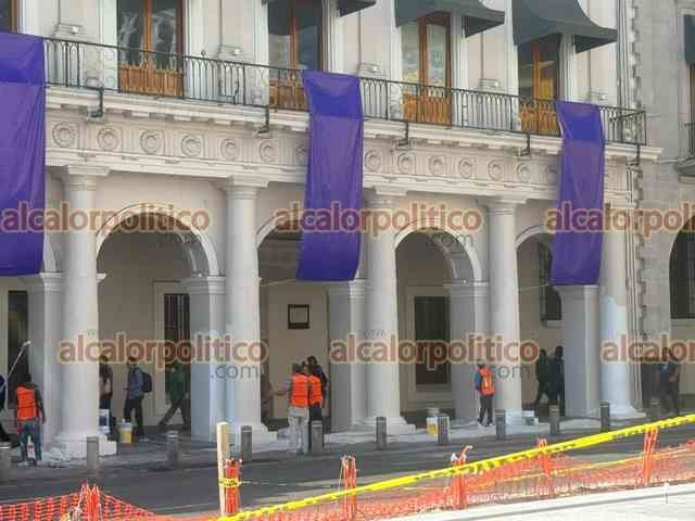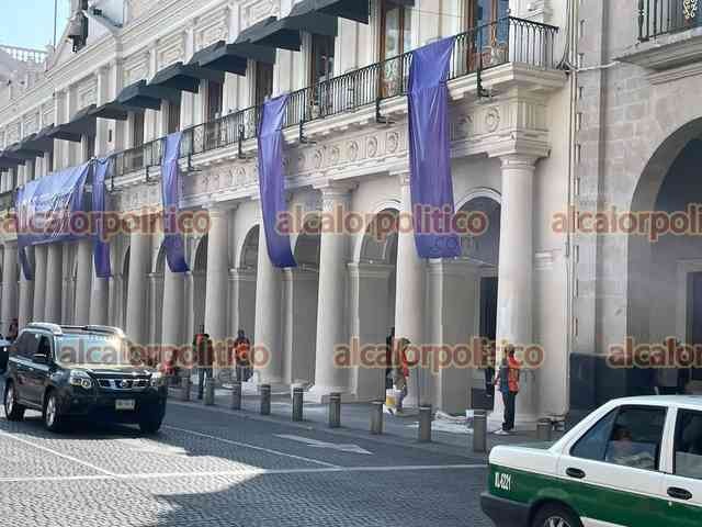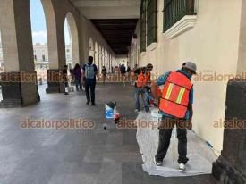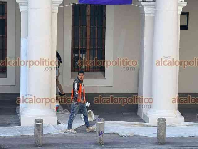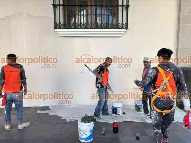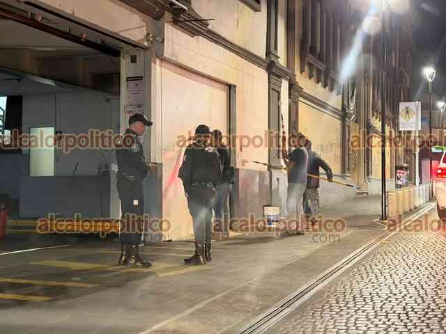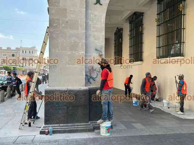 Xalapa, Ver., 9 de marzo de 2026.- Las pintas que mujeres hicieron durante la marcha del 8M en el Viaducto y Palacio de Gobierno fueron eliminadas con pintura. Los trabajos iniciaron desde la noche del domingo.