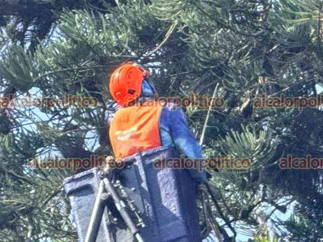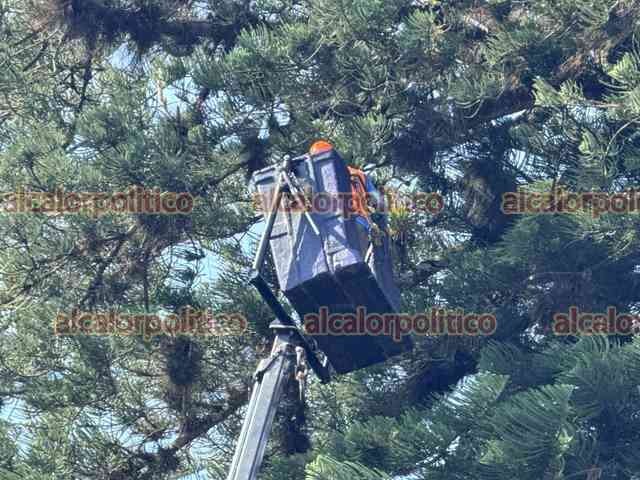 Xalapa, Ver., 12 de marzo 2026.- Personal municipal acordonó el área central del Parque Juárez para prevenir accidentes ante las fuertes rachas de viento. También se retiró rama de un árbol con riesgo de caer.