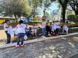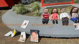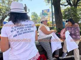 Xalapa, Ver., 14 de marzo de 2026.- En el Memorial de Desaparecidos, el colectivo Familiares Enlaces Xalapa se reunió para bordar el nombre de sus ausentes. También colocaron sus fotografías y figuras alusivas.