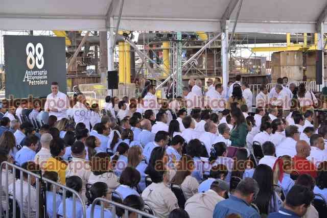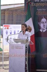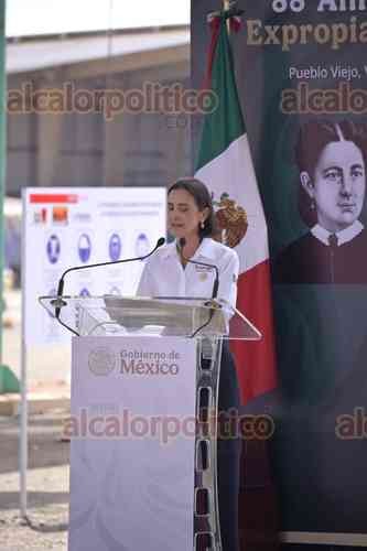 Pueblo Viejo, Ver., 18 de marzo de 2026.- Con la presencia de Cuauhtémoc Cárdenas Solórzano, la presidenta Claudia Sheinbaum encabezó el evento por el 88 Aniversario de la Expropiación Petrolera. Asistieron los gobernadores de Veracruz y Tamaulipas, Rocío Nahle y Américo Villarreal; los titulares de SEDENA, Ricardo Trevilla; de SEMAR, Raymundo Morales; de SENER, Luz González; de Bienestar, Ariadna Montiel, y el director de PEMEX, Víctor Rodríguez.