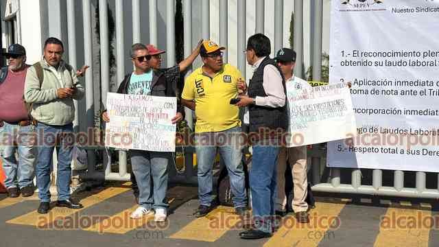 Xalapa, Ver., 23 de marzo de 2026.- Trabajadores de la SIOP suspendieron labores este lunes y bloquearon el acceso como medida de presión para exigir su reconocimiento como empleados de base.