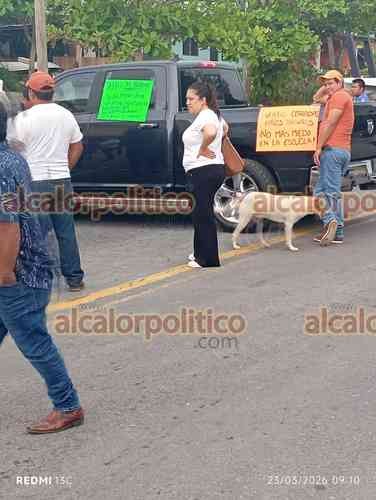 Tecolutla, Ver., 23 de marzo de 2026.- Padres de familia de la Escuela Primaria “Constitución”, de la comunidad de La Guadalupe, bloquearon la carretera federal 180, frente al plantel, para demandar que la Directora sea removida pues desatiende casos de bullying.