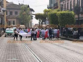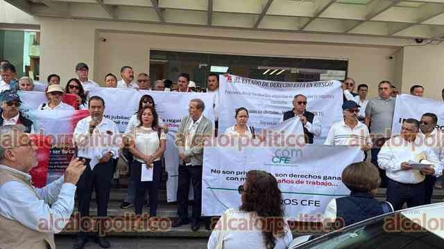 Xalapa, Ver., 24 de marzo de 2026.- Personal jubilado de la Comisión Federal de Electricidad protestó la mañana de este martes para defender el esquema de remuneraciones en el retiro; negaron contar con las denominadas “pensiones doradas”. Posteriormente marcharon al centro de la Capital