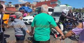 Xalapa, Ver., 28 de marzo de 2026.- Familiares de 聲gel Uriel, atropellado por motociclista, bloquearon ambos carriles del bulevar Xalapa-Banderilla, a la altura de la colonia 21 de Marzo. Exigen justicia para el menor que lo reportan grave. A las 11:15 horas despejaron la vialidad.