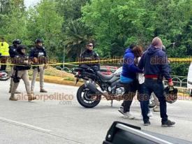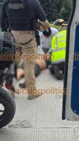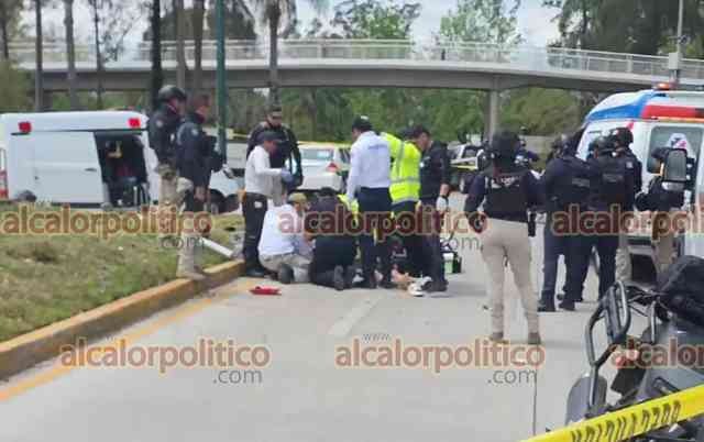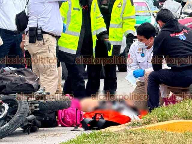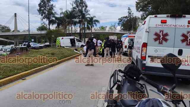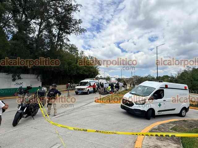 Xalapa, Ver., 28 de marzo de 2026.- Una pareja a bordo de motocicleta derrapó en Circuito Presidentes, a la altura de la USBI. El hombre falleció pese a que paramédicos trabajaron por 28 minutos para tratar de salvarle la vida. La mujer resultó lesionada y fue trasladada a un hospital. Circule con precaución.