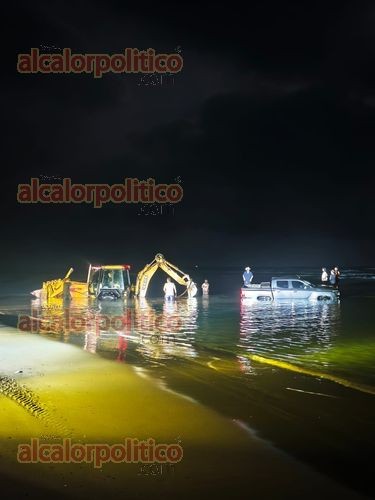 Úrsulo Galván, Ver., 2 de abril de 2026.- En la playa de Chachalacas, una camioneta se fue a una poza de esta playa; hasta el lugar tuvo que llegar maquinaria para sacar la unidad.