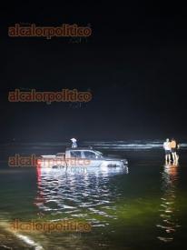 Camioneta queda dentro del agua en playa de Chachalacas