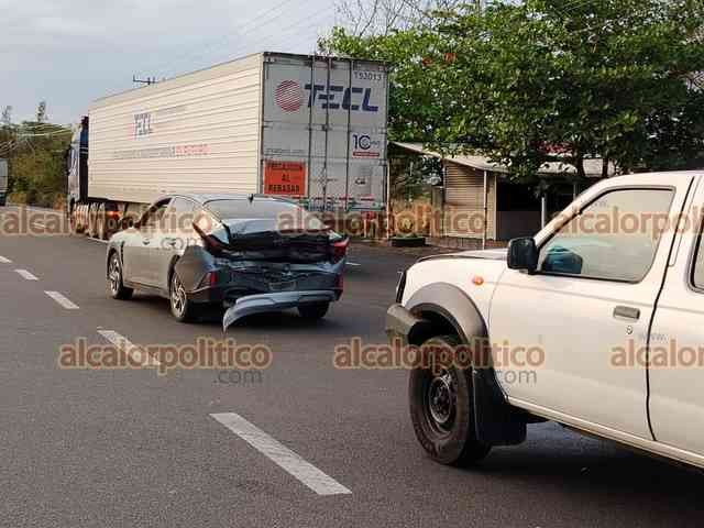 Puente Nacional, Ver., 9 de abril de 2026.- En la autopista Cardel-Poza Rica, a la altura del retorno el Pando 1, camioneta con remolque impactó por alcance a automóvil.