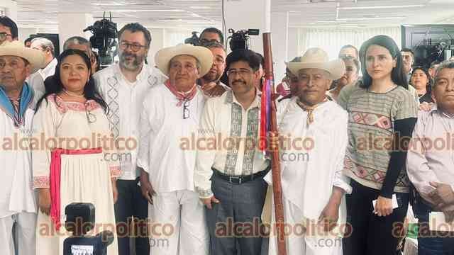 Papantla, Ver., 10 de abril de 2026.- El ministro presidente de la SCJN, Hugo Aguilar Ortiz, encabezó el inicio del programa de la Defensoría Pública Electoral del TEPJF junto al presidente, Gilberto Bátiz; integrantes del órgano de administración judicial y Guadalupe Simbrón García, director del Centro de las Artes indígenas. Representantes indígenas hicieron un ritual para el éxito.