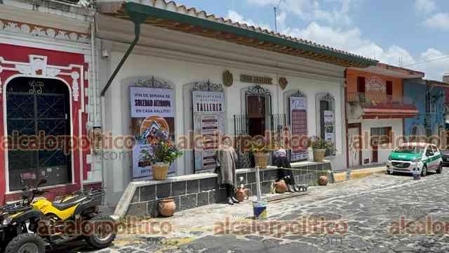 Xalapa, Ver., 11 de abril de 2026.- Artesanas de la Sierra de Zongolica ofrecen sus productos en la muestra “Manos de Atzompa”, instalada en Casa Xallitic, en el Barrio Mágico homónimo.