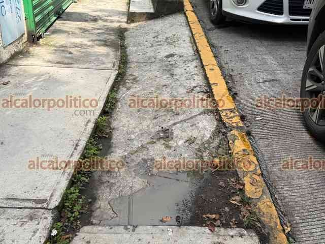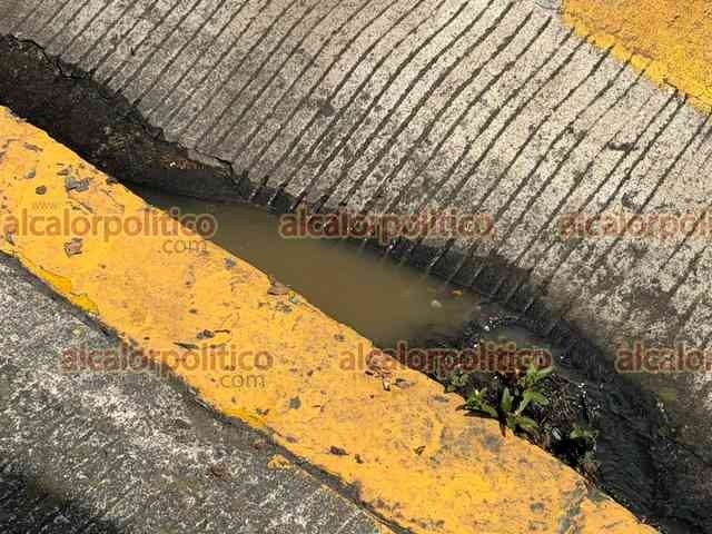 Xalapa, Ver., 14 de abril de 2026.- En la avenida Murillo Vidal, brotan aguas negras de una alcantarilla. Van dejando pestilencia a su paso.