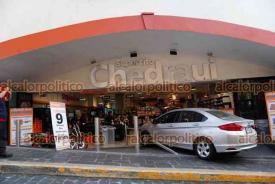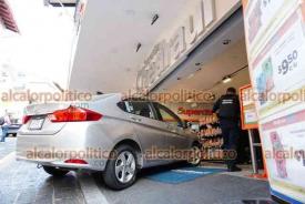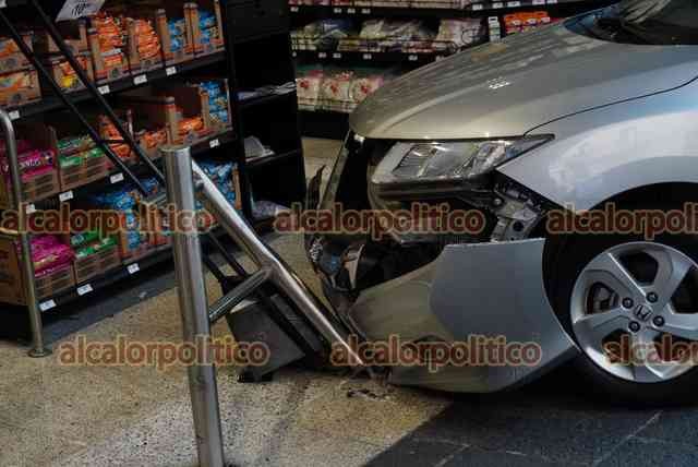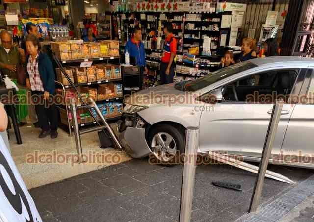 Xalapa, Ver., 15 de abril de 2025.- Adulta mayor metió su auto a la tienda de Almacenes Chedraui, en la calle Revolución, en el Centro. Presuntamente, se confundió y pensó que era estacionamiento.