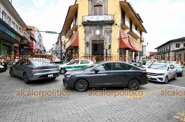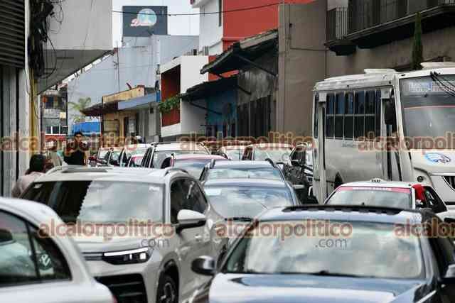 Xalapa, Ver., 16 de abril de 2026.- Debido a los bloqueos por manifestaciones en el Centro de la ciudad, el tráfico colapsó.