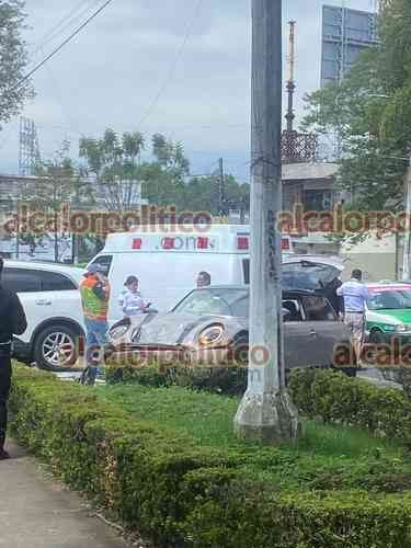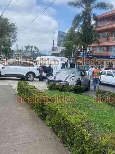 Xalapa, Ver., 17 de abril de 2026.- Autos chocaron en la avenida Ávila Camacho, a la altura del Teatro del Estado. Percance se dio cuando uno de los vehículos salía de edificio y fue impactado por el otro automóvil.
