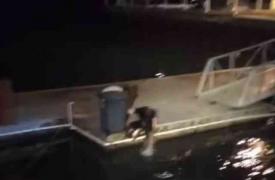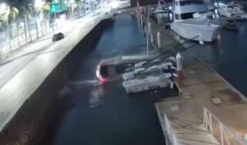 Veracruz, Ver., 18 de abril de 2026.- En redes sociales circula video del momento en que un veloz auto cae al mar en muelle ubicado a un costado del bulevar Manuel Ávila Camacho en el carril con dirección a la Escuela Náutica Mercante. El conductor logró salir por su cuenta.