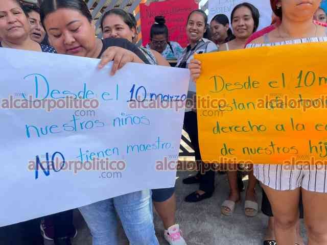 Yanga, Ver., 20 de abril de 2026.- Padres de familia exigen docente capacitado y con vocación de servicio para primero y segundo grado de primaria, pues desde el 10 de marzo los alumnos no tienen clases, lo que provoca rezago escolar.