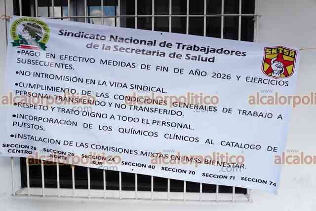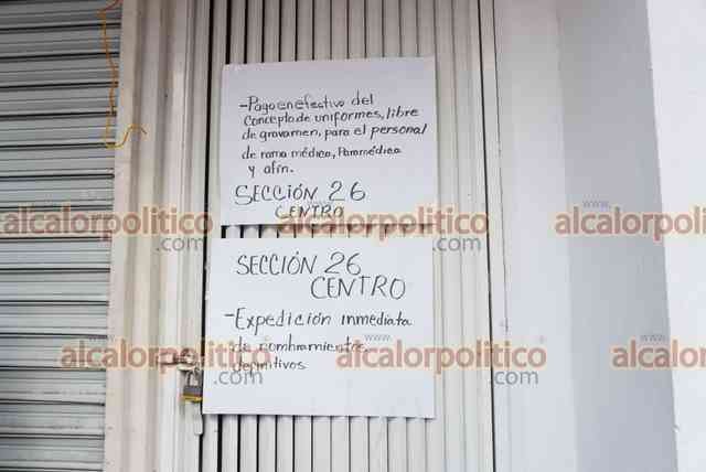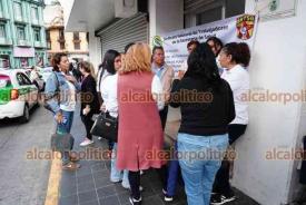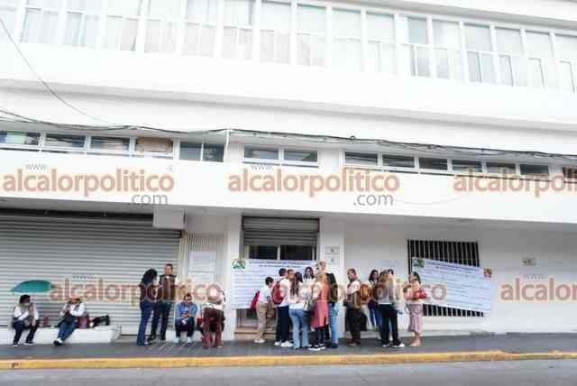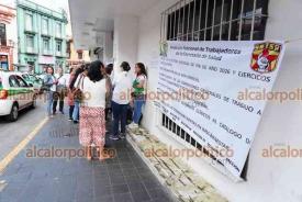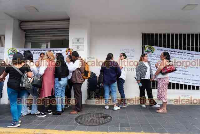 Xalapa, Ver., 20 de abril de 2026.- Personal de Salud se manifiesta, sin bloquear calle, en las oficinas de los Servicios de Salud ubicadas en Xalapeños Ilustres.